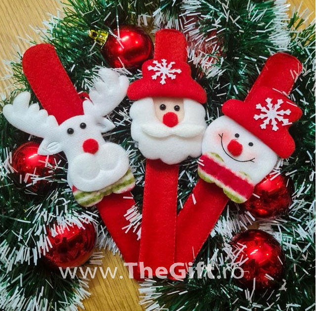Bratara, accesoriu de par, cu Mos Craciun sau reni la