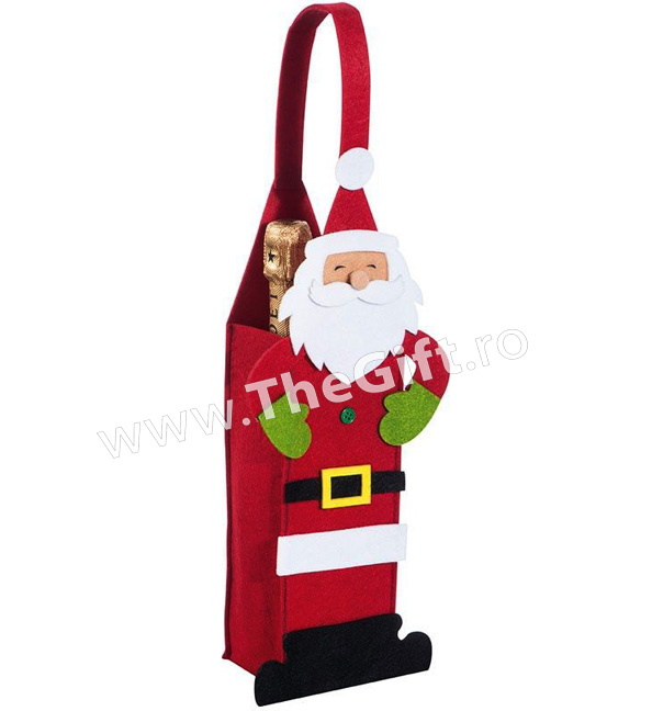 Husa Mos Craciun pentru sticle este rezistenta, fiind realizata din pasla groasa.