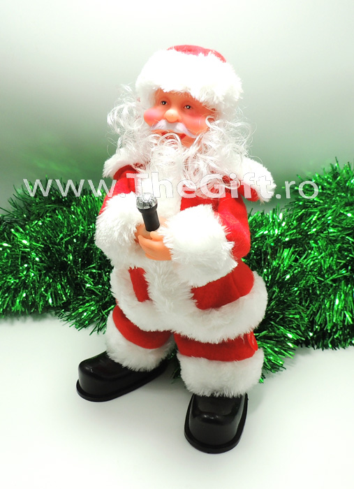 Mos Craciun care canta la microfon la