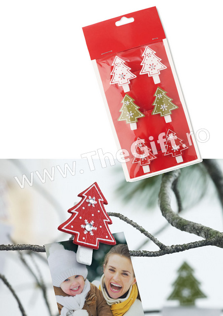 Setul de 6 clestisoare in forma de braduti de Craciun din lemn, cu strasuri reprezinta o idee de cadou originala si inedita.