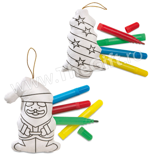 Personalizati-va bradutul cu ajutorul acestui accesoriu special, pe care il ve-ti colora impreuna cu copilul dumneavoastra. Il veti agata apoi in brad pentru a demonstra Mosului talentul de pictor al copilului. Setul contine o figurina in forma de Mos Craciun sau brad si carioci.